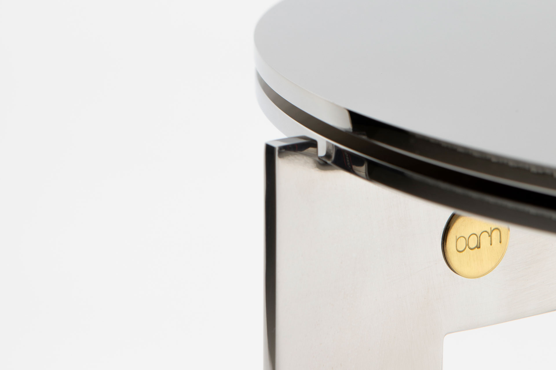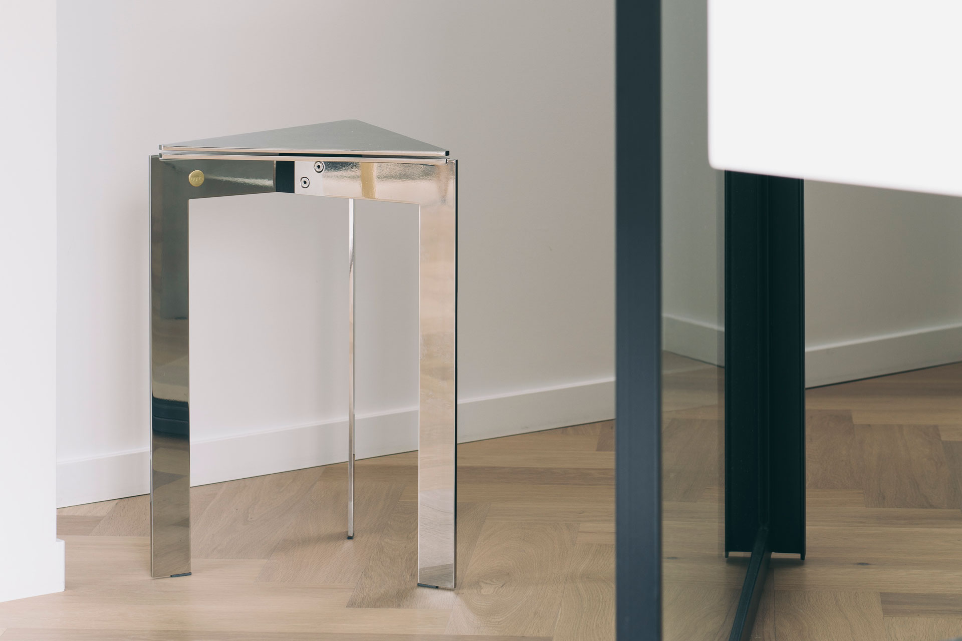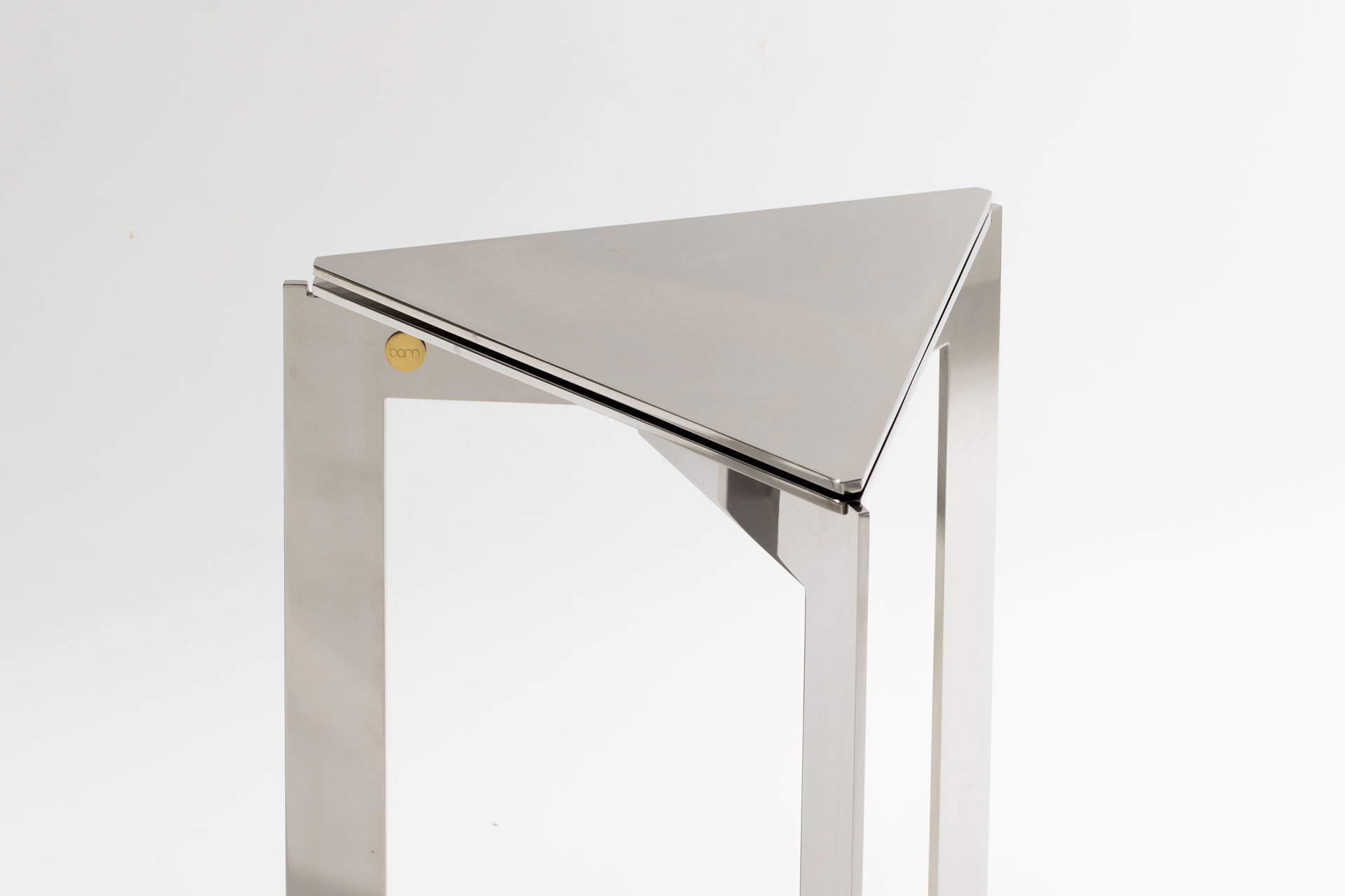 Within the joined collection barh designed two special edition tables which stand out from the crowd. A 3 legged table with triangular or round top, all in polished stainless steel. These collectible tables come in a limited edition of 8 pieces.