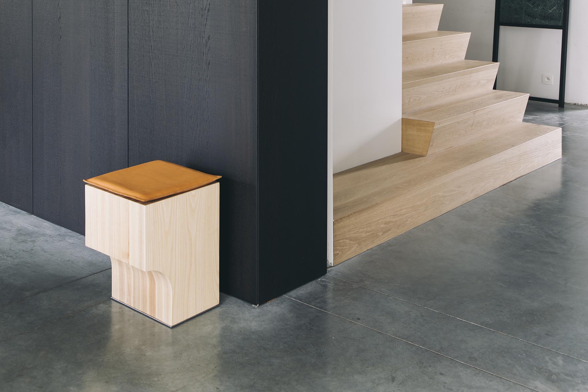 arch is a stool or a side table with a clear design language. What looks like a static element quickly becomes much more dynamic when in use by someone sitting on it. The curve that slims down the seating object, creates a difference in mass, which offers the possibility to balance it while sitting. A beautiful collaboration between ergonomics and aesthetics.
